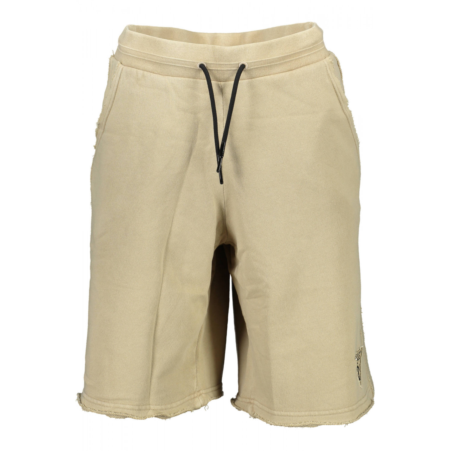 SPORT-BERMUDA, ELASTISCHER BUND MIT SCHNÜRUNGEN, 2 TASCHEN, KONTRASTDETAILS, RAW-SCHNITT, LOGO, BIO-BAUMWOLLE
