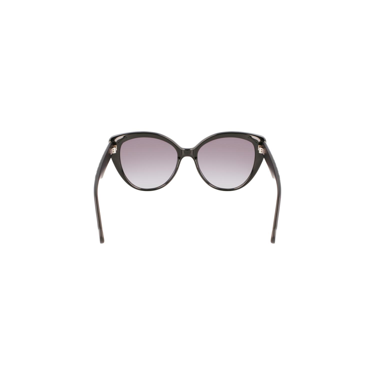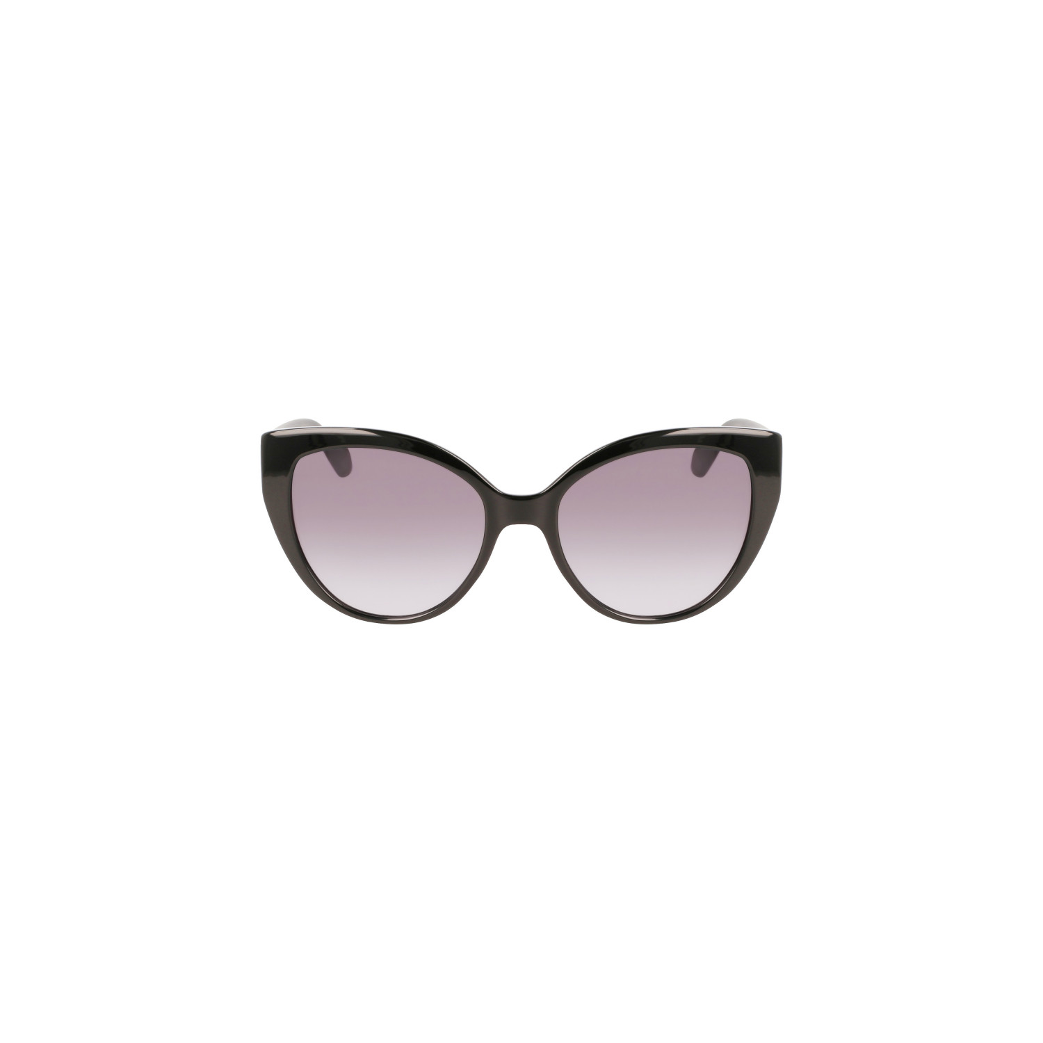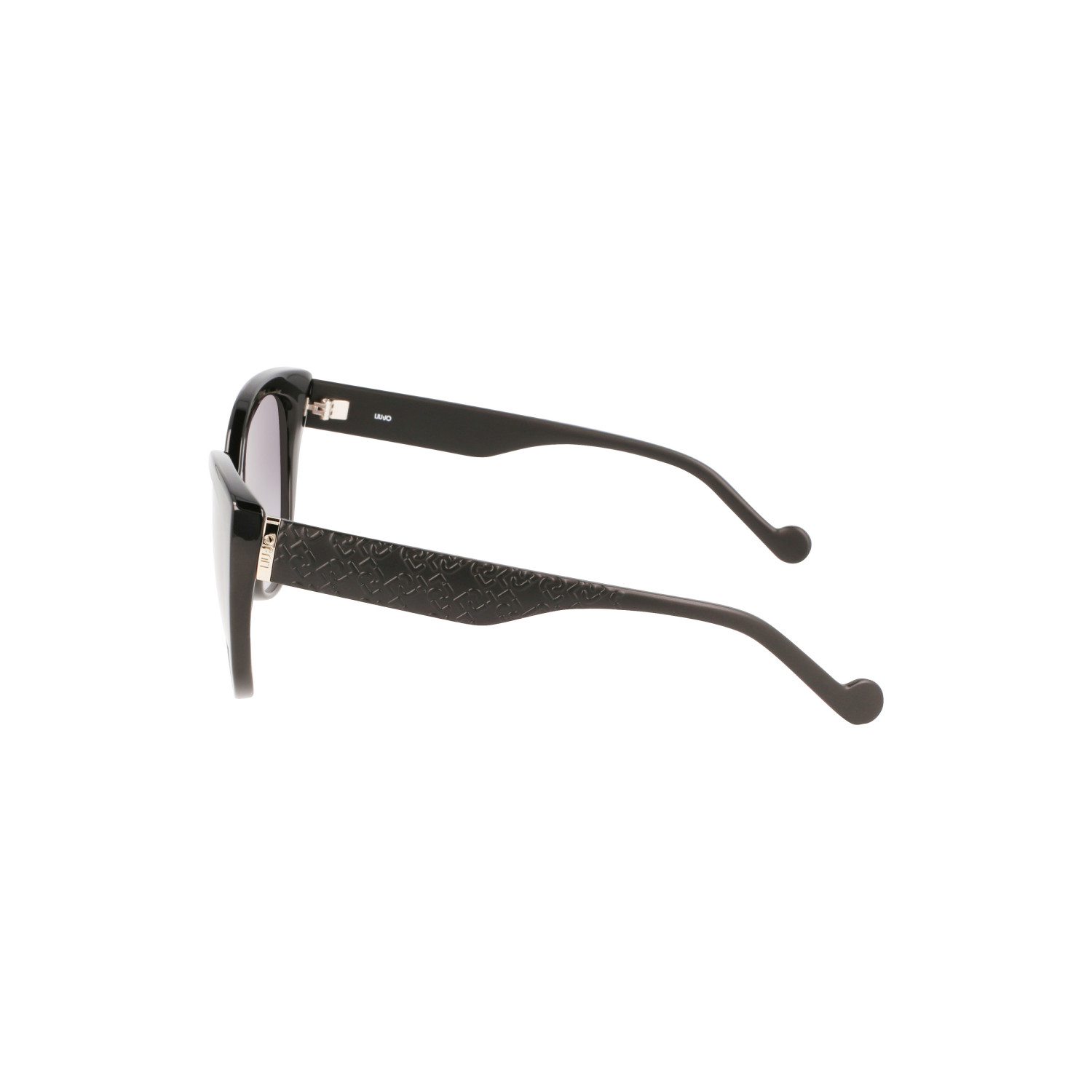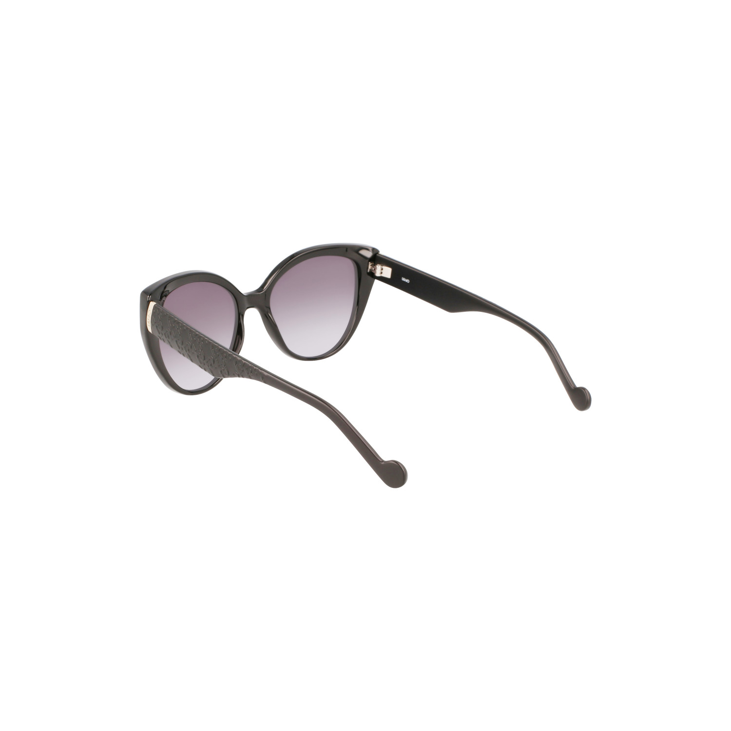 SONNENBRILLE, RAHMEN AUS SPRITZKUNSTSTOFF, KONTRASTDETAILS, RUNDE GLAS, SCHWARZES GLAS, GLASBREITE 54 MM, BRÜCKENBREITE 18 MM, BÜGELLÄNGE 140 MM, LOGO