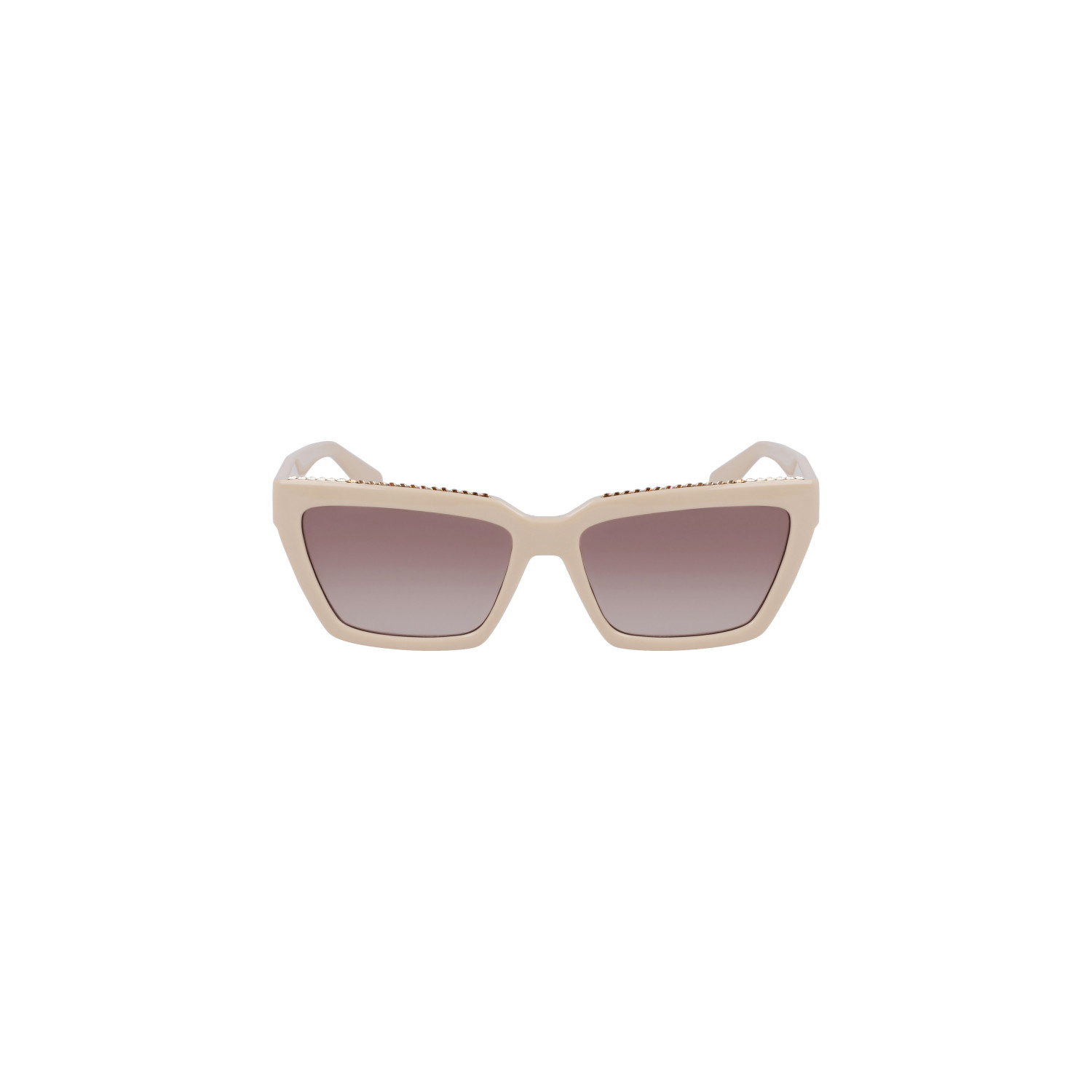 SONNENBRILLE, RAHMEN AUS SPRITZKUNSTSTOFF, KONTRASTDETAILS, RECHTECKIGES GLÄSER, RAUCHE GLAS, GLASBREITE 57 MM, BRÜCKENBREITE 16 MM, BÜGELLÄNGE 140 MM, LOGO