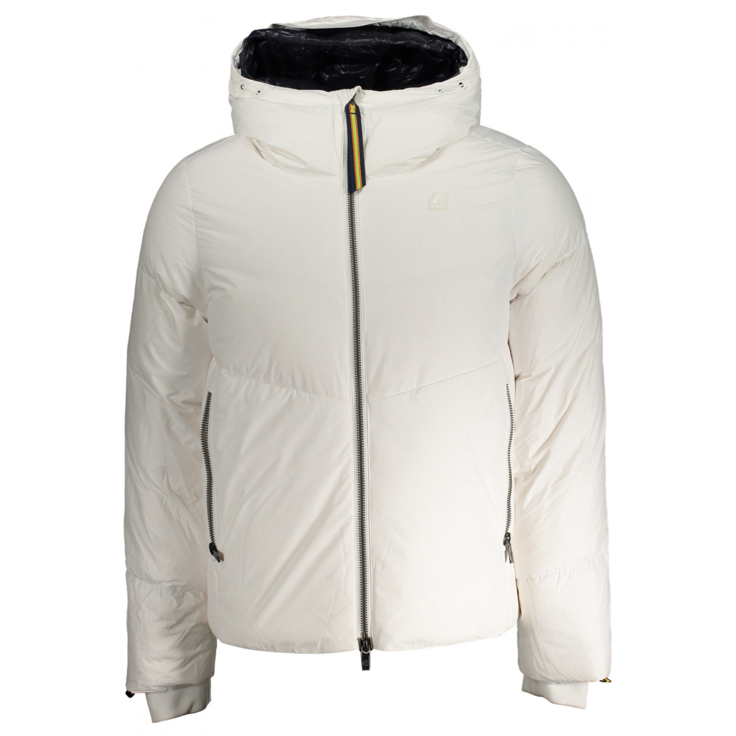 LANGÄRMELIGE Gänsedaunenjacke mit Kapuze, Thermo-Soft-Touch, 3 Innentaschen, 2 Außentaschen, Kontrastdetails, Applikation, Reißverschluss, Logo
