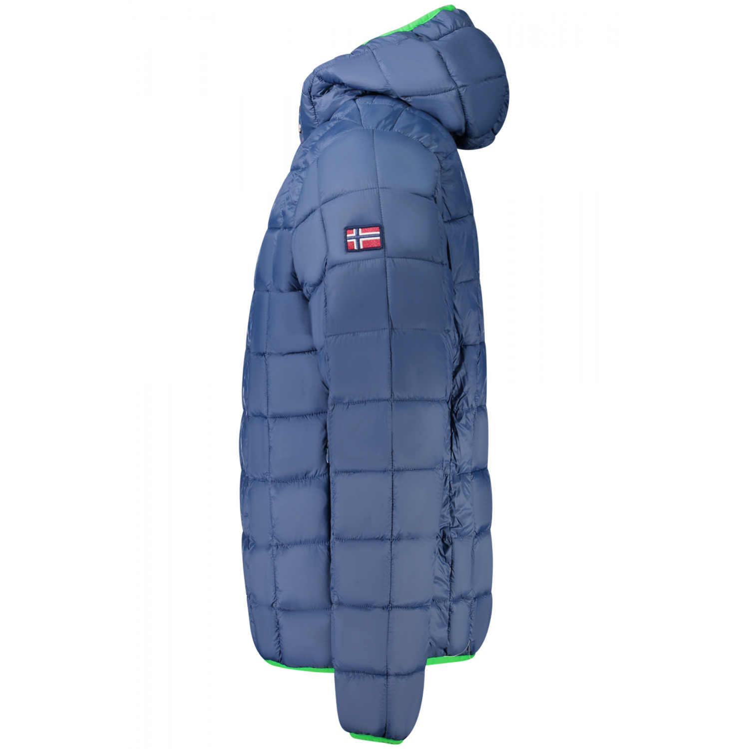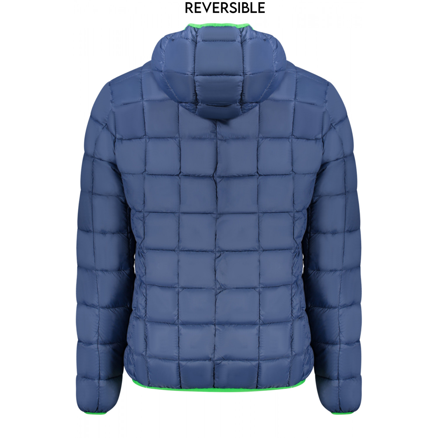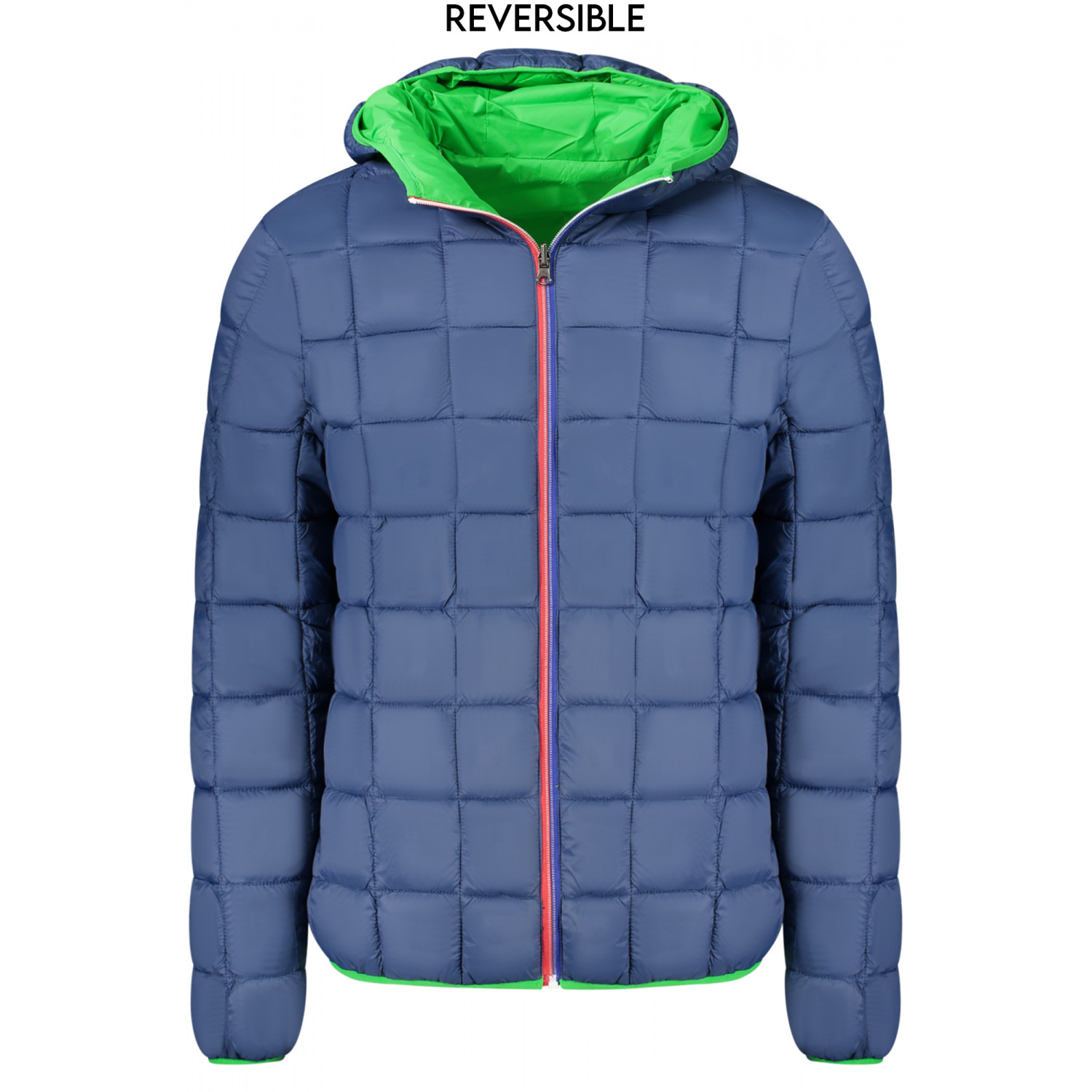LANGÄRMELIGE JACKE MIT KAPUZE, WENDBAR GRÜN/BLAU, 2 AUSSENTASCHEN, 2 INNENTASCHEN, REISSVERSCHLUSS, APPLIKATION, LOGO