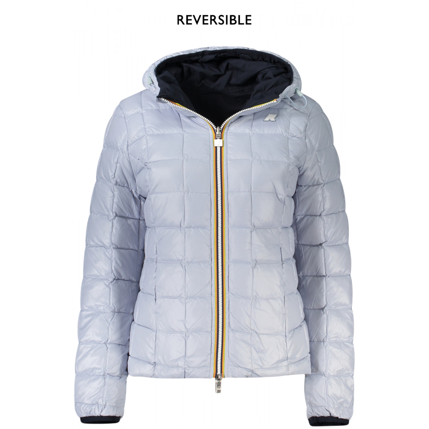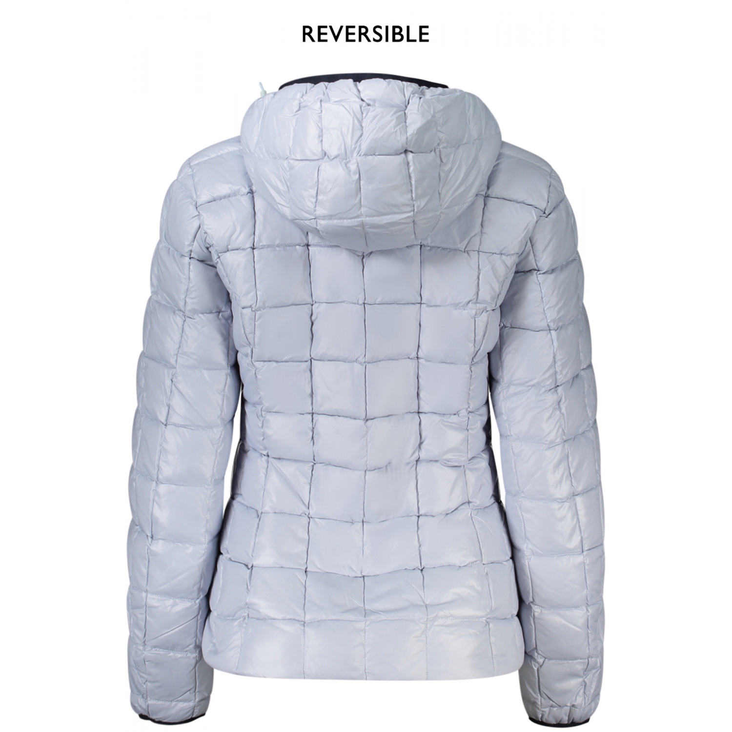 LANGÄRMELIGE JACKE MIT KAPUZE, WENDBAR BLAU/HELLBLAU, DOPPELTE WATTUNG, 2 AUSSENTASCHEN, 2 INNENTASCHEN, KONTRASTDETAILS, REISSVERSCHLUSS, APPLIKATION, LOGO