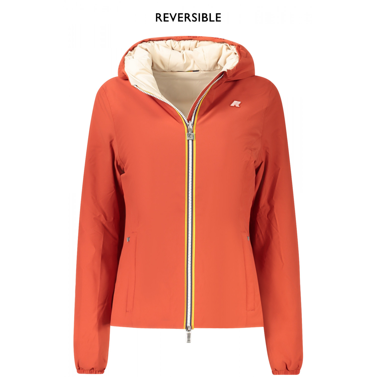 LANGÄRMELIGE JACKE MIT KAPUZE, WENDBAR ZIEMLICH ROT/ROSA, GEPOLSTERT, 2 AUSSENTASCHEN, 2 INNENTASCHEN, KONTRASTDETAILS, REISSVERSCHLUSS, APPLIKATION, LOGO