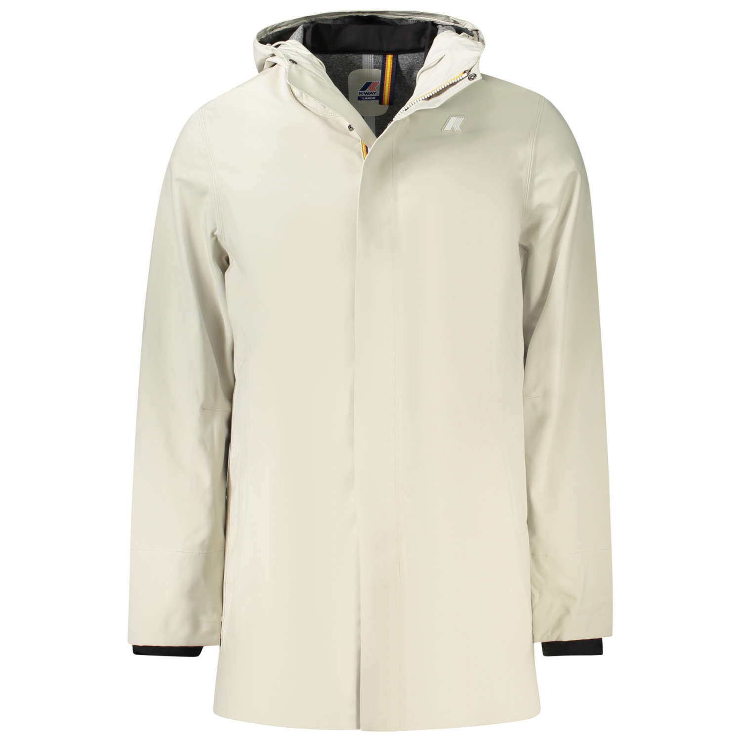 LANGÄRMELIGER TRENCHCOAT MIT KAPUZE, 2 AUSSENTASCHEN, 1 INNENTASCHE, REISSVERSCHLUSS UND KNÖPFE, APPLIKATION, LOGO