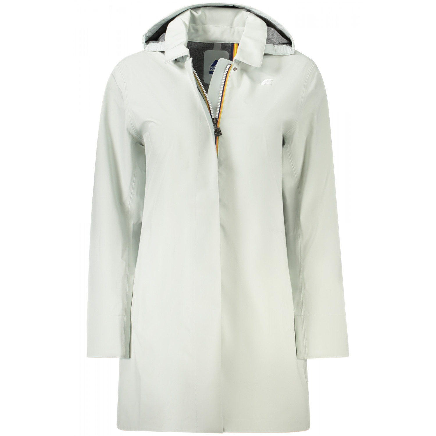 LANGÄRMELIGER TRENCHCOAT MIT ABNEHMBARER KAPUZE, 2 AUSSENTASCHEN, REISSVERSCHLUSS UND KNÖPFE, APPLIKATION, LOGO