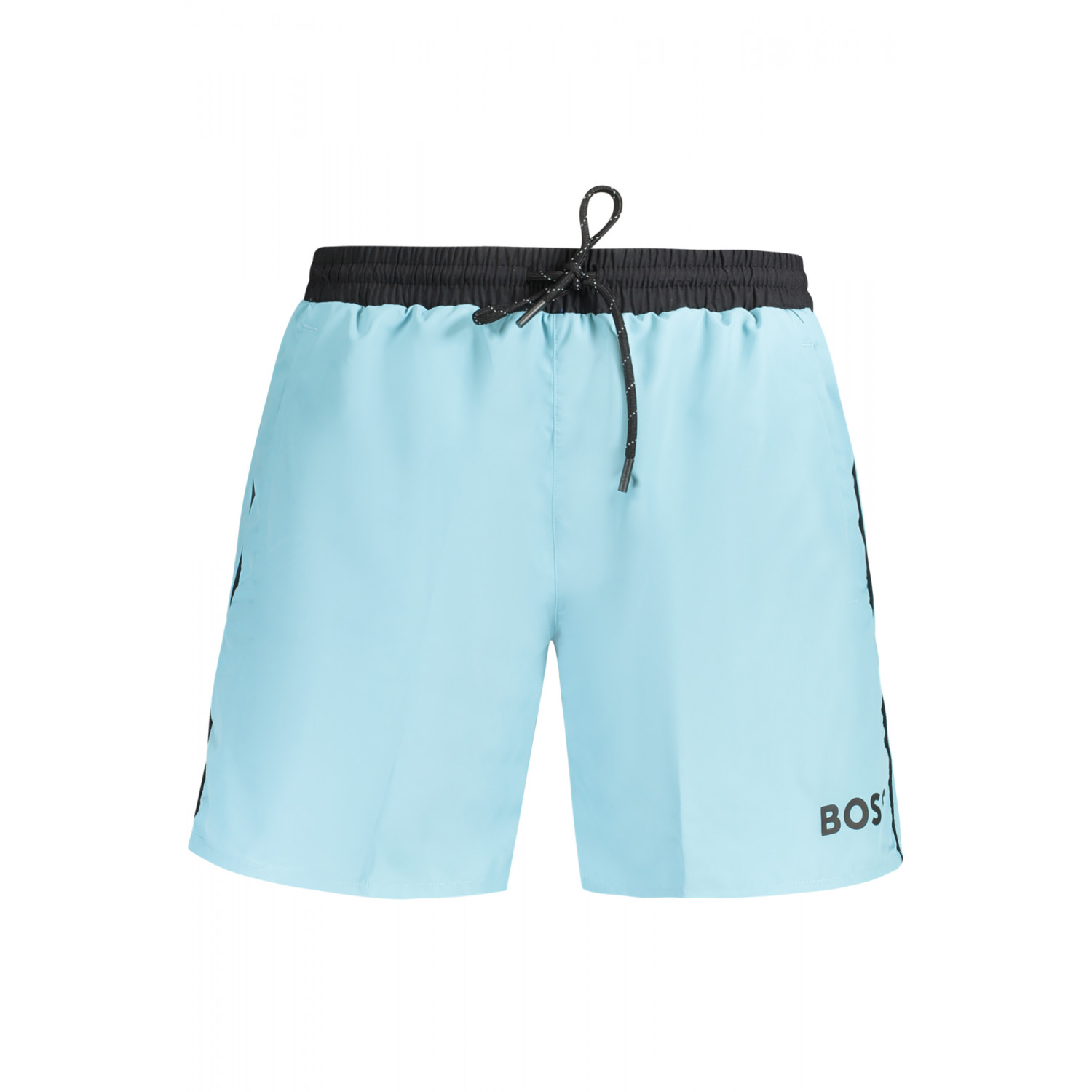 BADEBOXER, INNEN MIT SLIP, 2 TASCHEN, 1 GESÄSSTASCHE, ELASTISCHER BUND MIT SCHNÜRSENKEL, KONTRASTIERENDE DETAILS, PRINT, LOGO