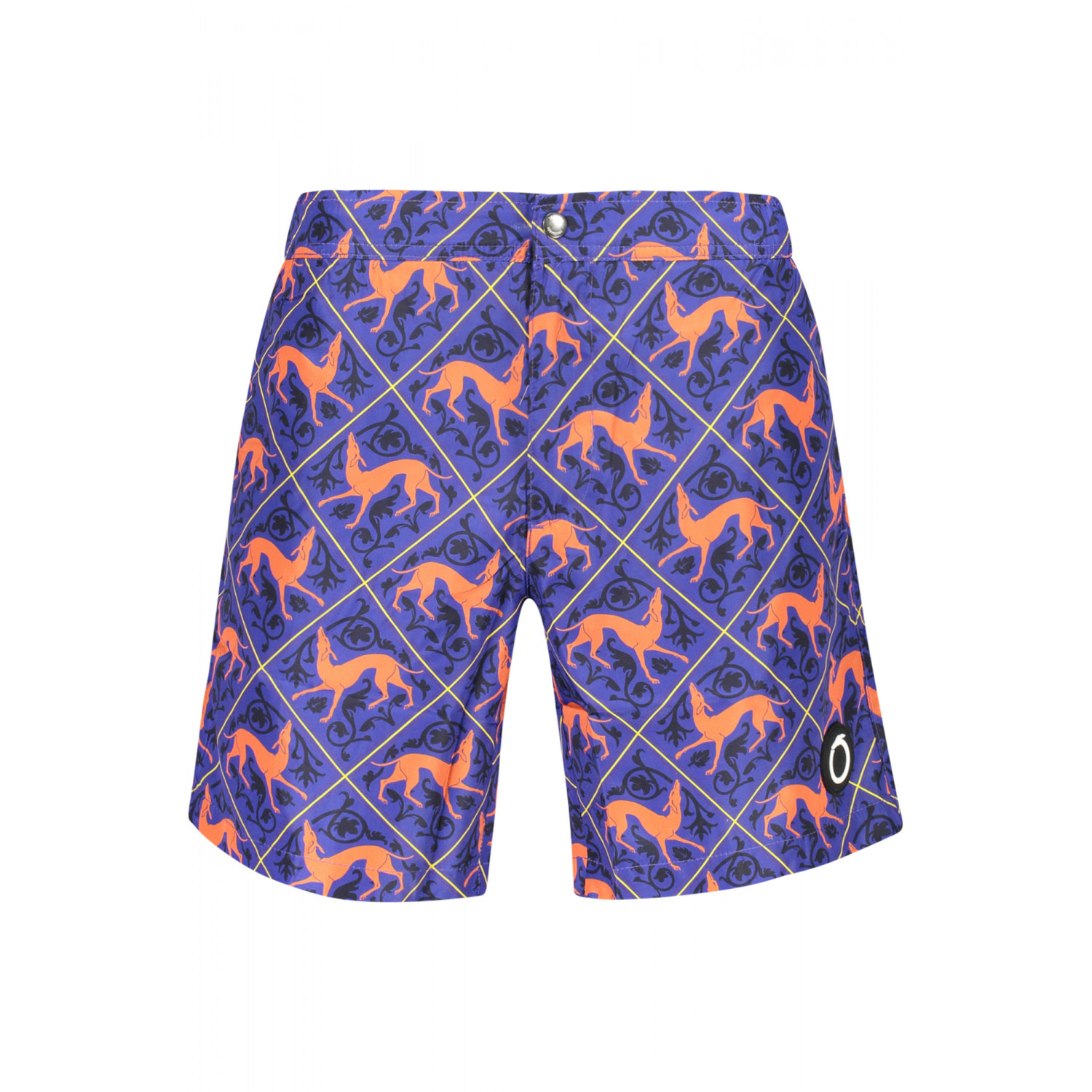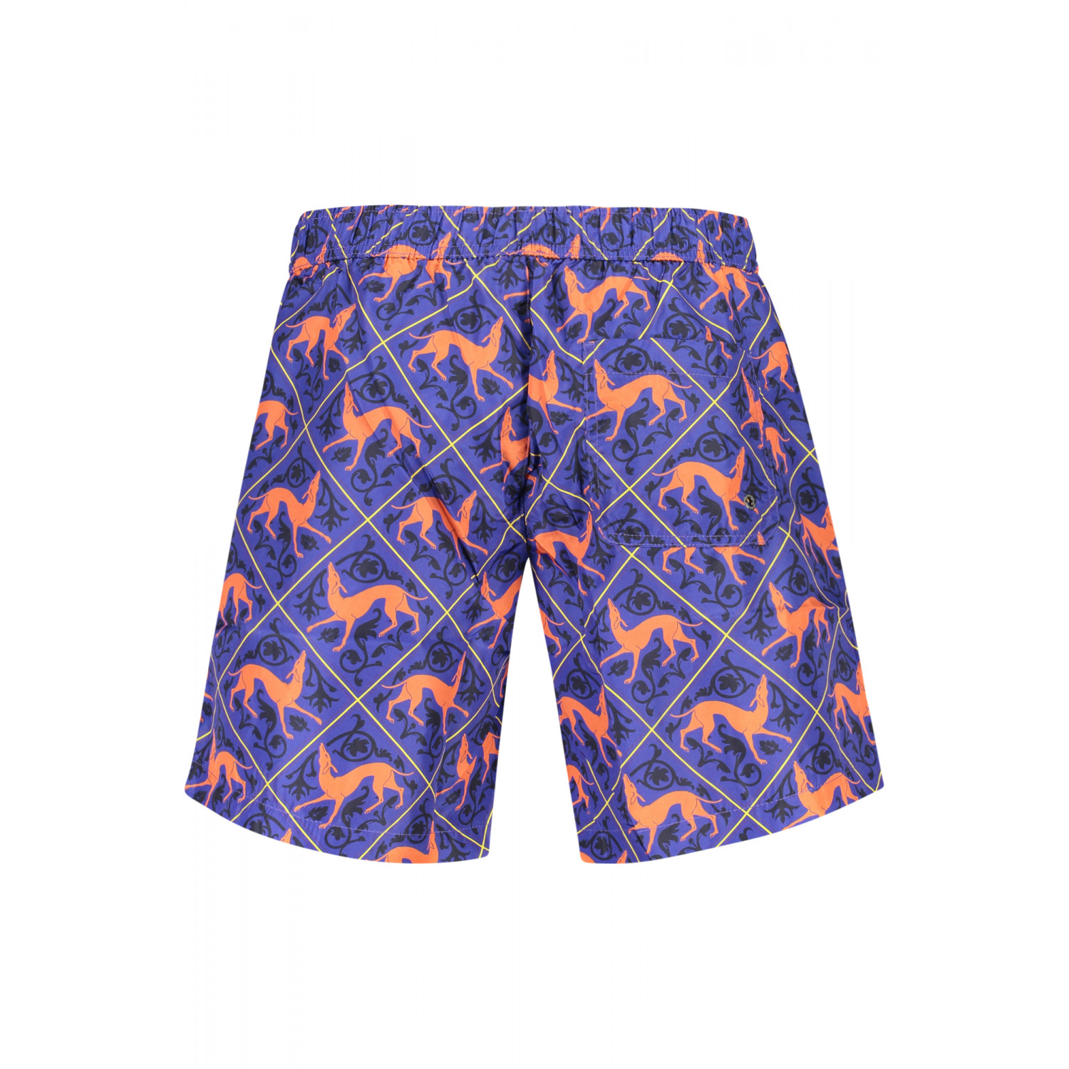 MEDIUM SWIM BOXER, ALL OVER GREYHOUND, INNEN MIT SLIP, ELASTISCHER BUND MIT KNOPF UND REISSVERSCHLUSS, 2 TASCHEN, 1 GESÄSSTASCHE, KONTRASTIERENDE DETAILS, APPLIKATION, LOGO