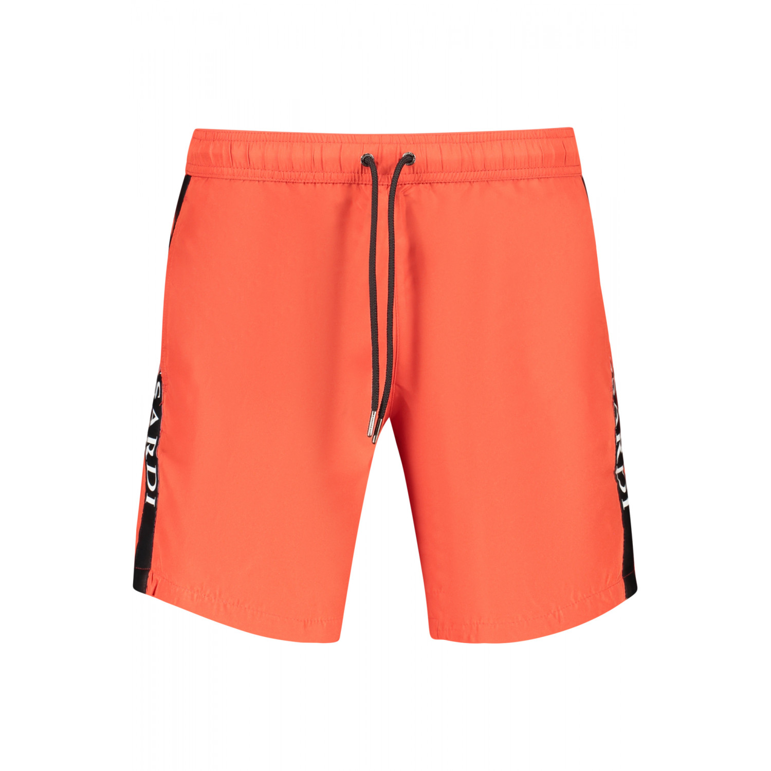BADEBOXER MIT TAPE, INNEN MIT SLIP, ELASTISCHER BUND MIT SCHNÜRSENKEL, 2 TASCHEN, 1 GESÄSSTASCHE, KONTRASTIERENDE DETAILS, DRUCK, LOGO