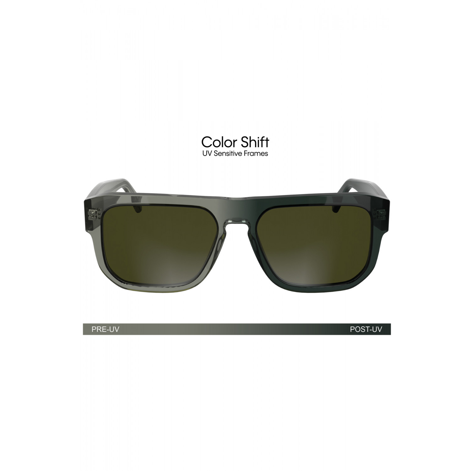 SONNENBRILLE, ACETATRAHMEN, ECKIGE GLÄSER, RAUCHGLAS, GLÄSERBREITE 55 MM, BRÜCKENBREITE 17 MM, BÜGELLÄNGE 145 MM, LOGO