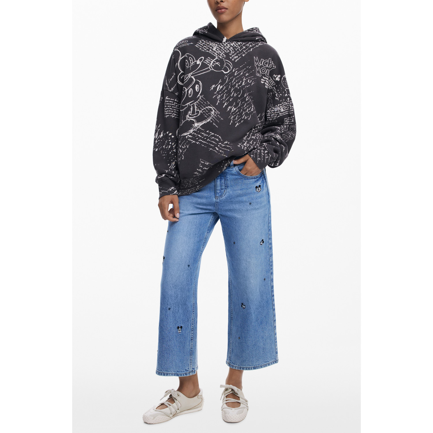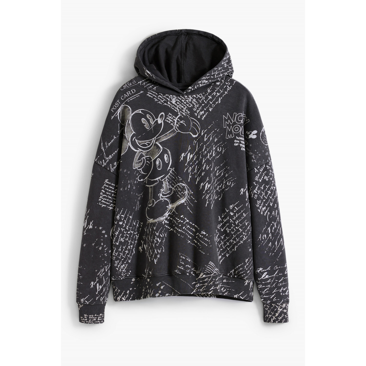 Langarm-Hoodie mit Mickey-Schriftzügen, Sweatshirt, 2 Taschen, Aufdruck, Logo