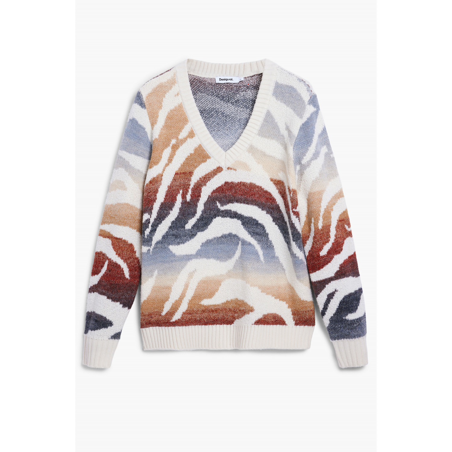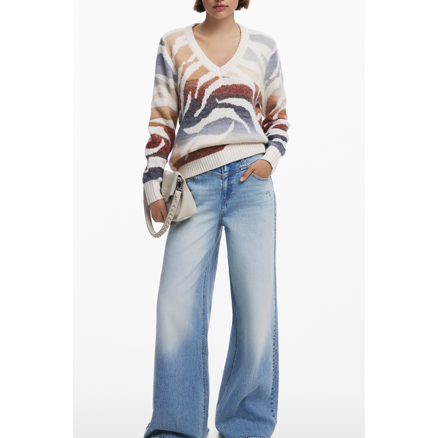 LANGÄRMELIGES T-SHIRT MIT GEMUSTER, WASILLA-TRIKOTS, V-AUSSCHNITT, LOGO