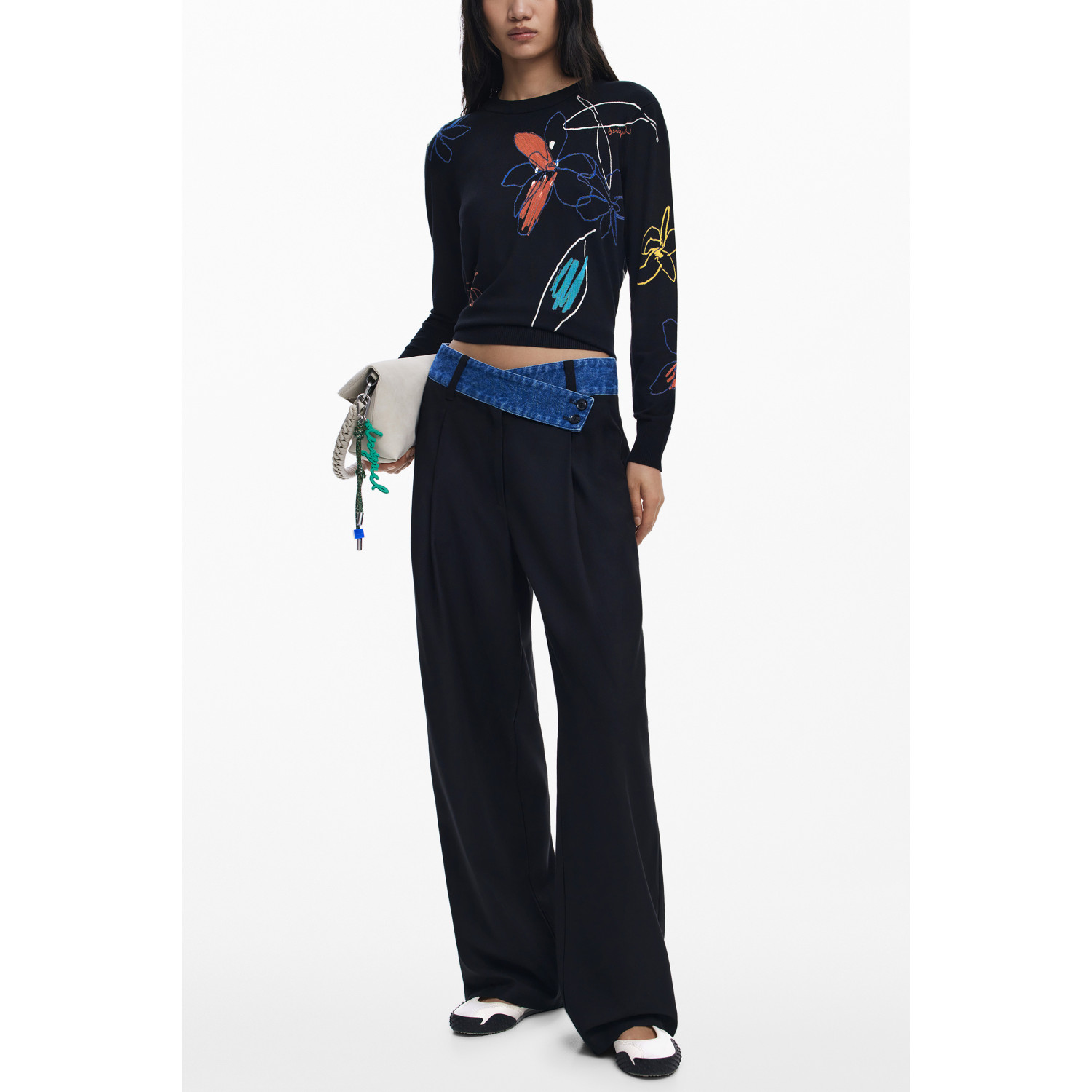 LANGÄRMELIGES T-SHIRT MIT GEMUSTER, KÜNSTLERISCHES TRIKOTS, RUNDHALSAUSSCHNITT, LOGO