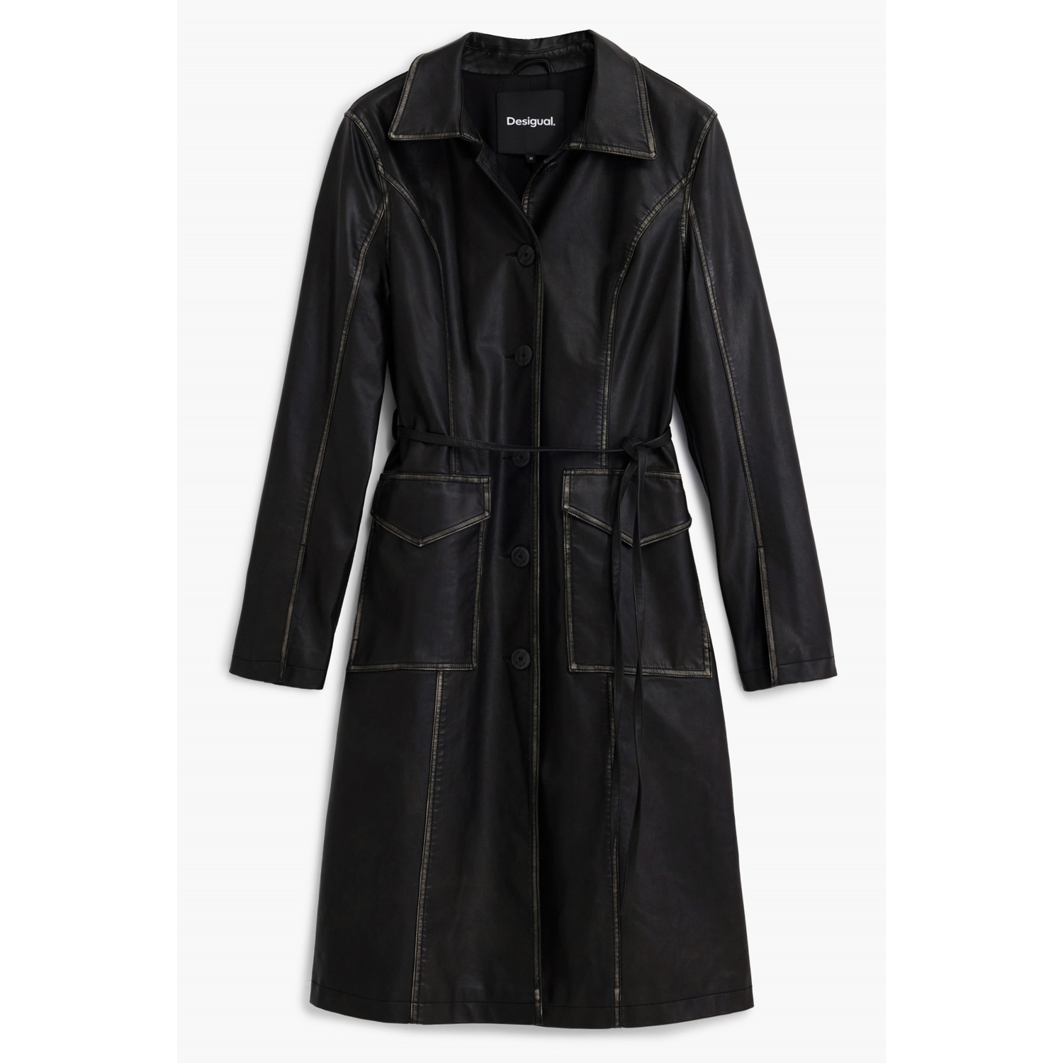 LANGER MANTEL MIT LANGEN ÄRMELN, CHAQ LILLY, 2 AUSSENTASCHEN, HÜFTGÜRTEL, KONTRASTIERENDE DETAILS, KNÖPFE, LOGO