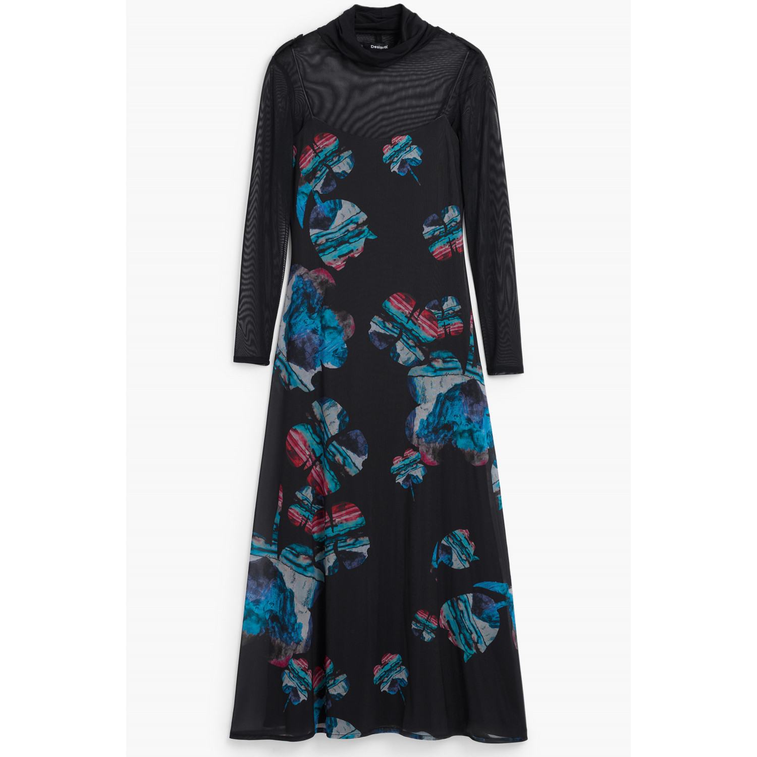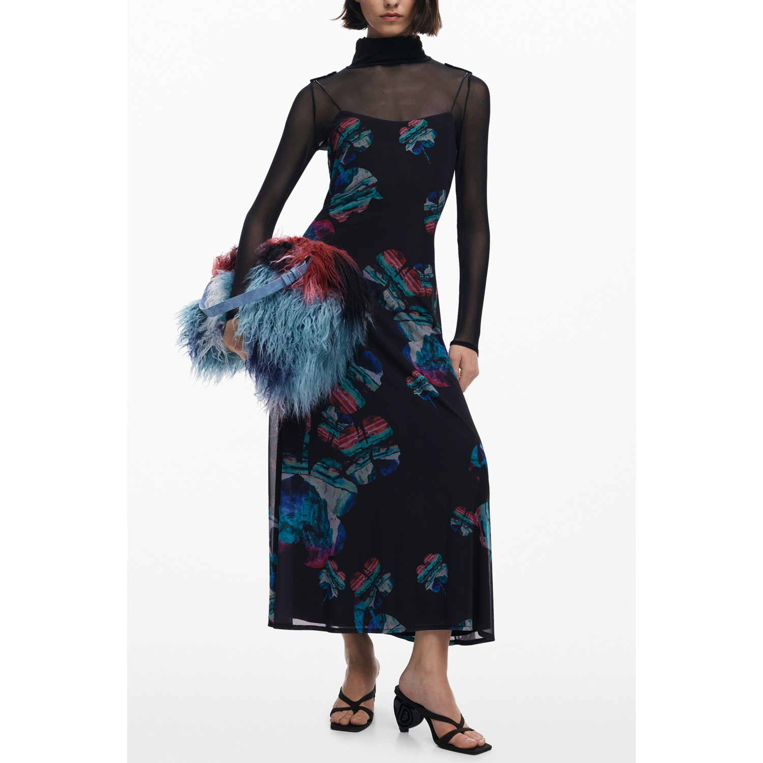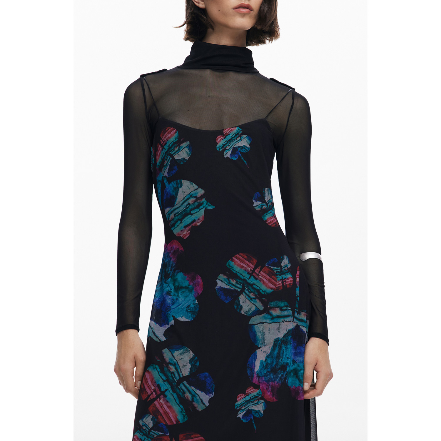 LANGES KLEID MIT T-SHIRT, AQUARELL, VERSTELLBARE DÜNNE TRÄGER, LANGÄRMLIGES T-SHIRT MIT HOCHAUSSCHNITT, KONTRASTIERENDE DETAILS, LOGO