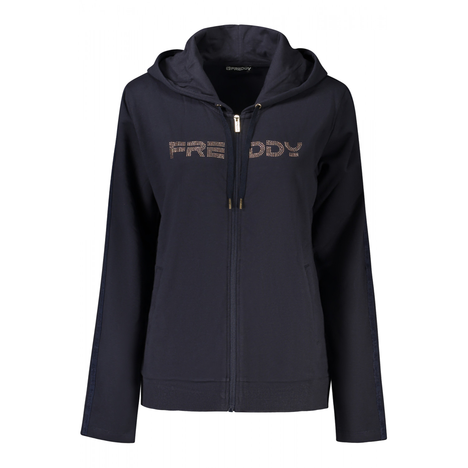 LANGARM-HOODIE, SWEATSHIRT, 2 TASCHEN, REISSVERSCHLUSS, STRASS-APPLIKATION, LOGO