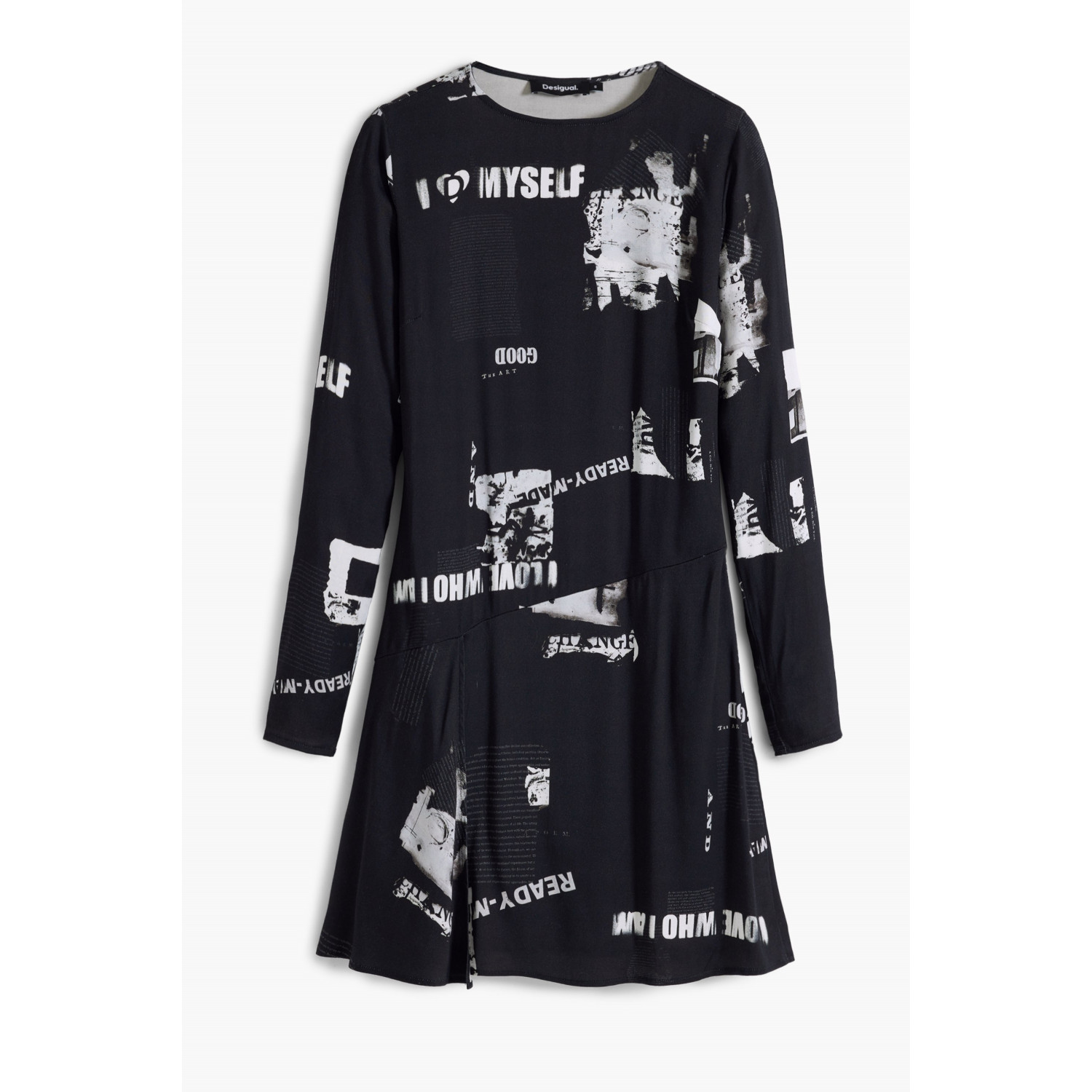 KURZES KLEID MIT LANGEN ÄRMELN UND EINER GEMUSTERTEN STICKEREI, NEWSCORTO, WEITEM AUSSCHNITT, KONTRASTIERENDEN DETAILS, LOGO