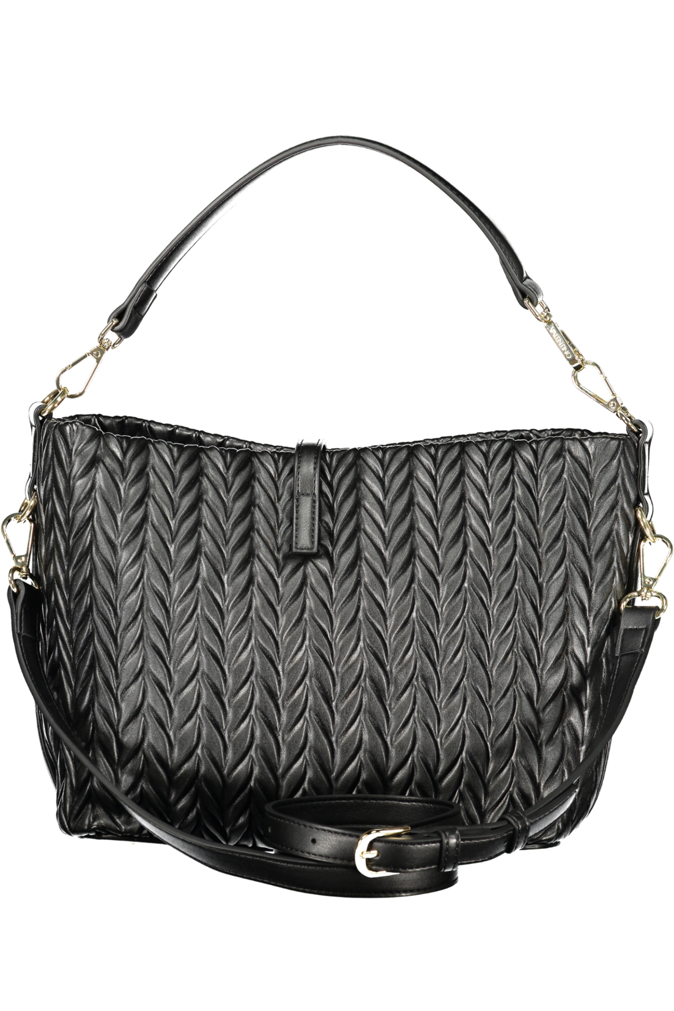 SCHULTERTASCHE MIT 1 GRIFF, VERSTELLBARER UND ABNEHMBARER SCHULTERGURT, 2 INNENTASCHEN, KONTRASTIERENDE DETAILS, DRUCKVERSCHLUSS, SCHUTZFÜSSE, LOGO