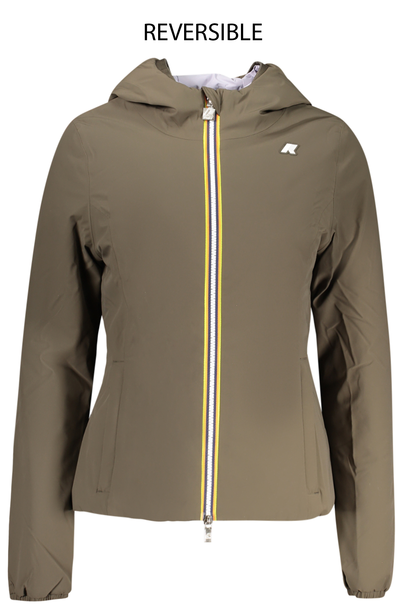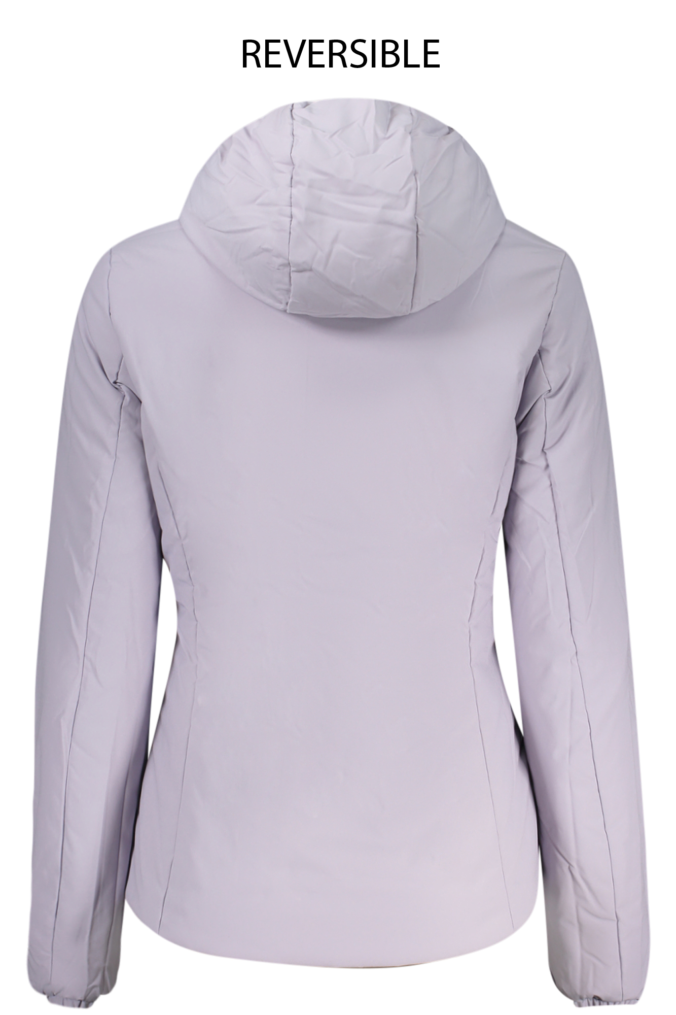 GIUBBOTTO MANICHE LUNGHE CON CAPPUCCIO, REVERSIBILE MARRONE/GLICINE, IMBOTTITO, 2 TASCHE ESTERNE, 2 TASCHE INTERNE, DETTAGLI A CONTRASTO, ZIP, APPLICAZIONE, LOGO