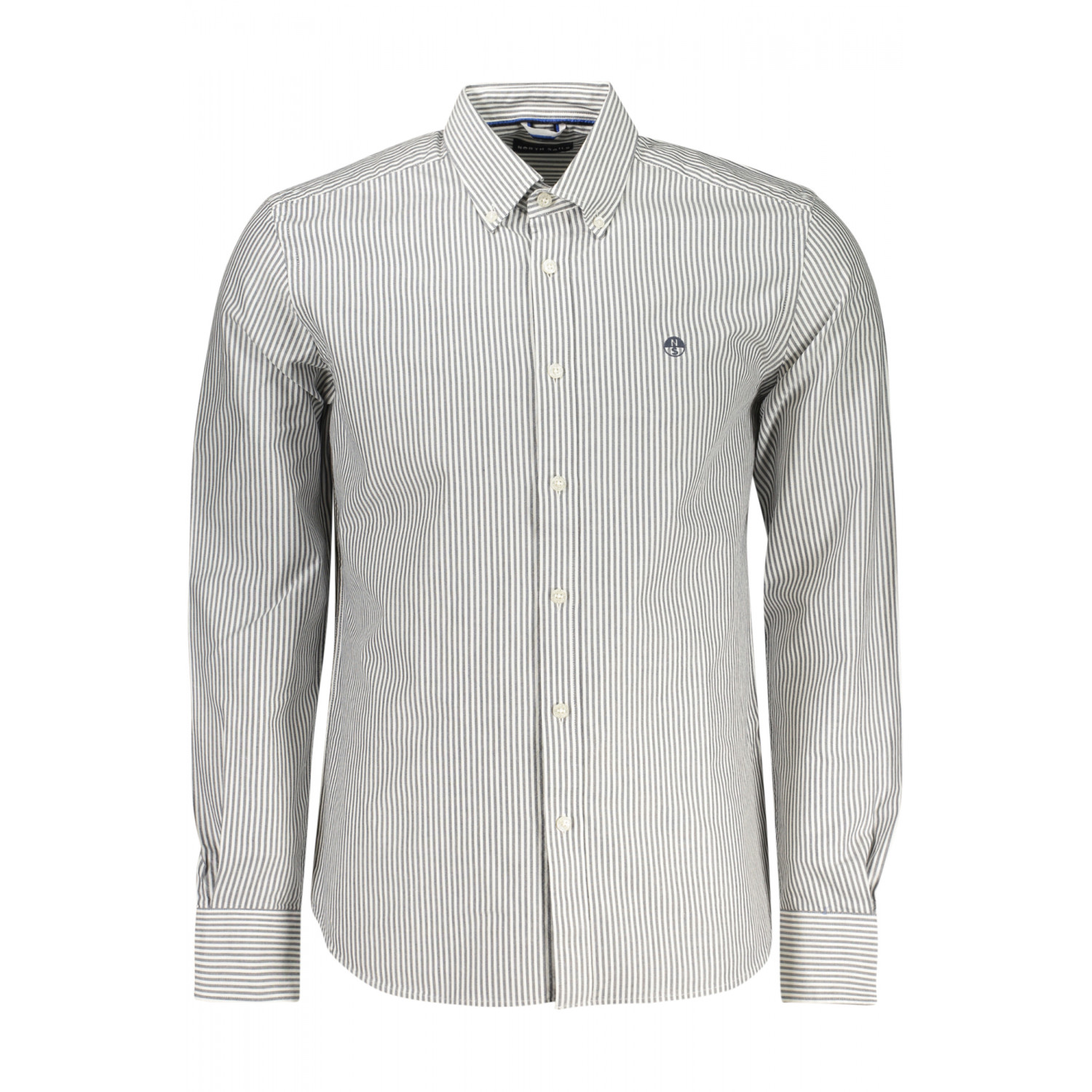 Schwarz gestreiftes Langarmhemd, Knopfleiste, Manschetten mit einem Knopf, Knöpfe, Stickerei, Logo, Ocean Positive