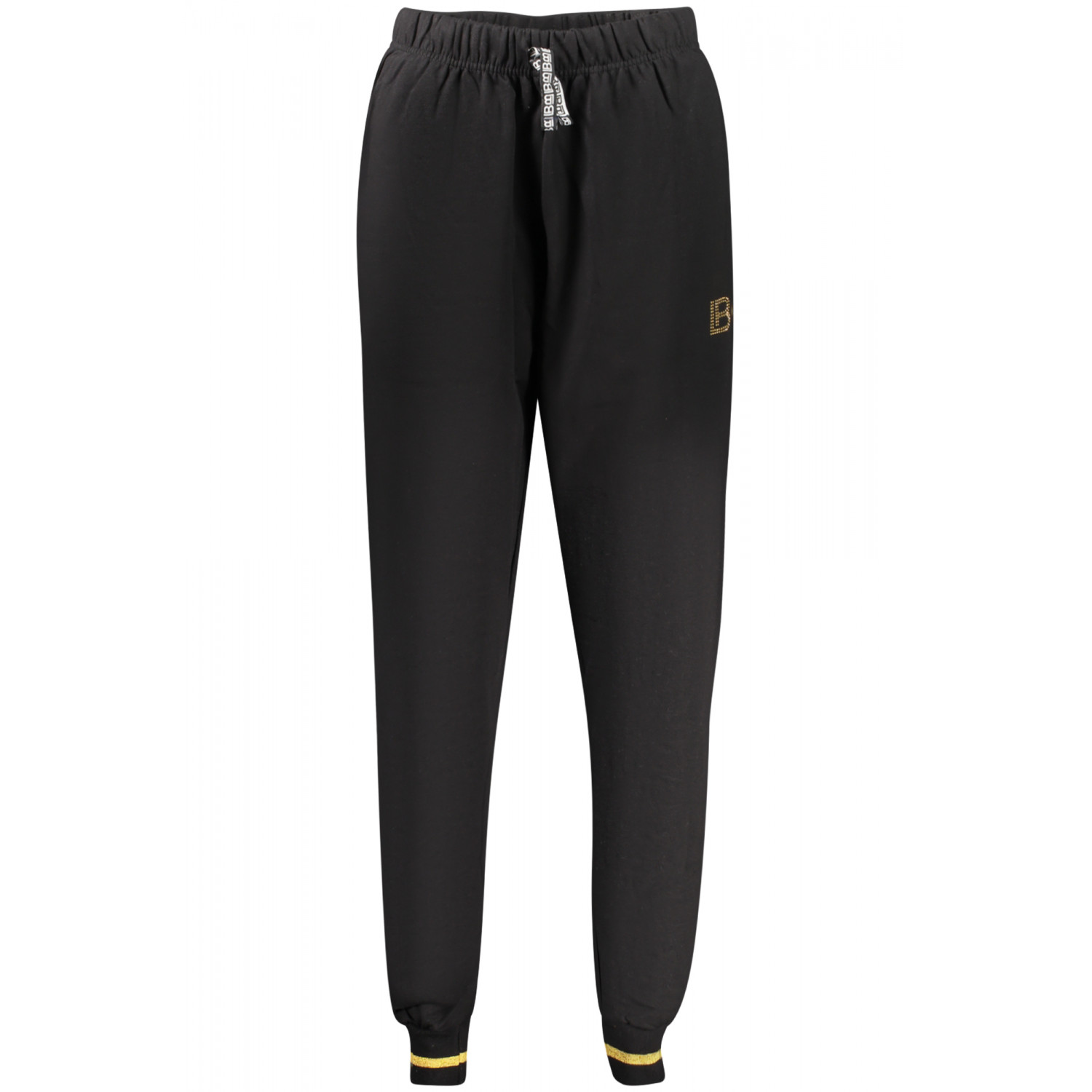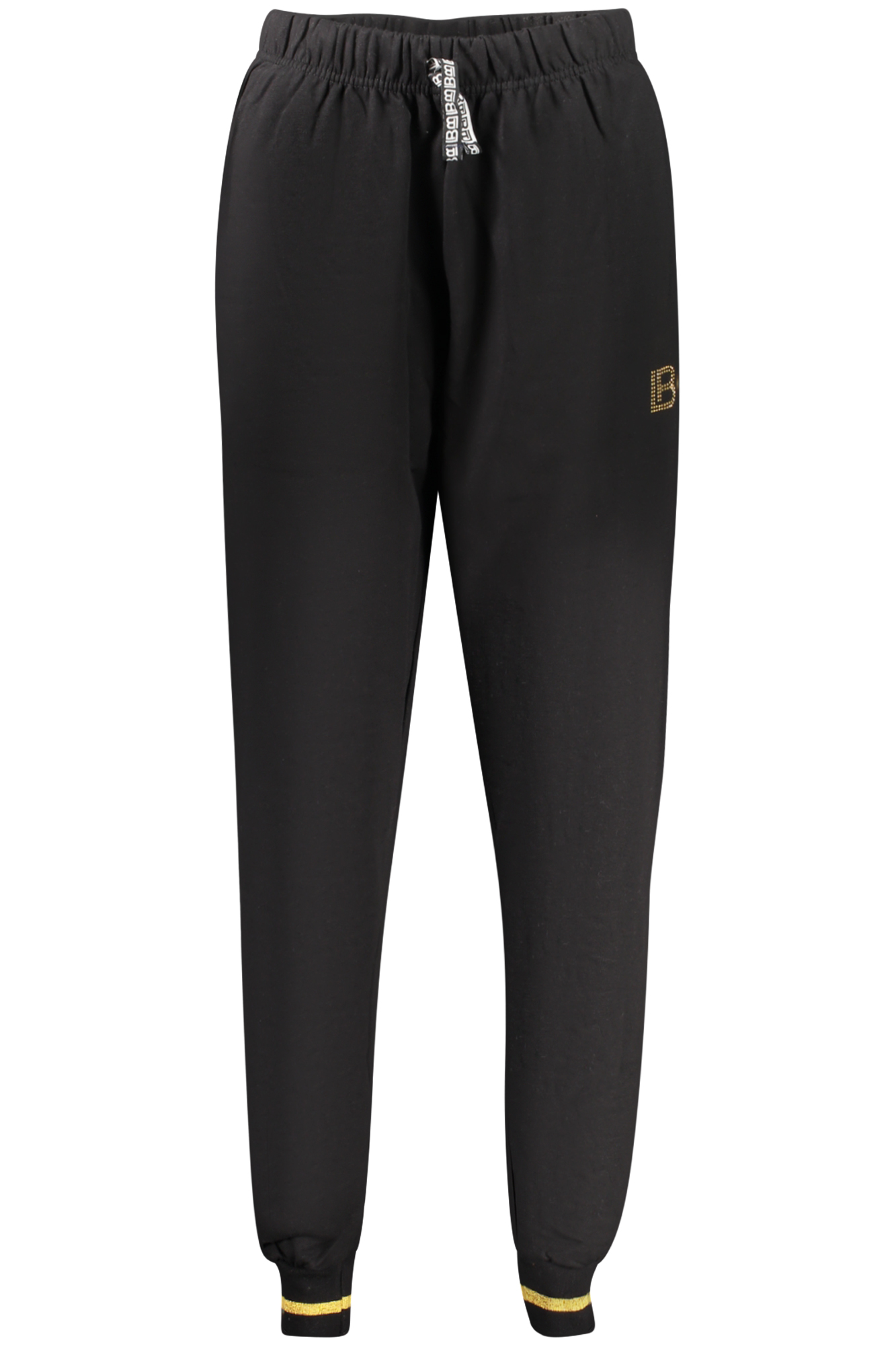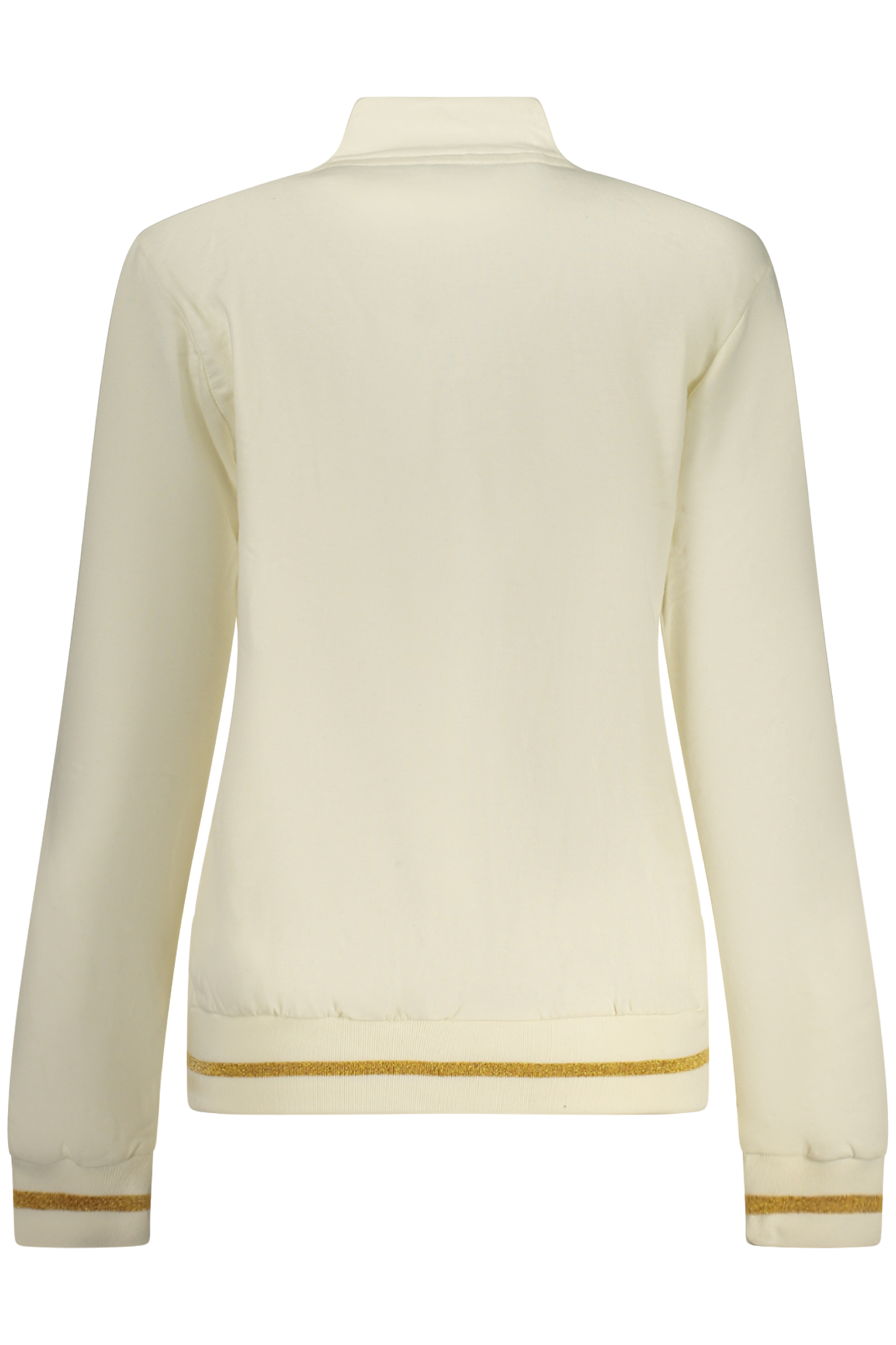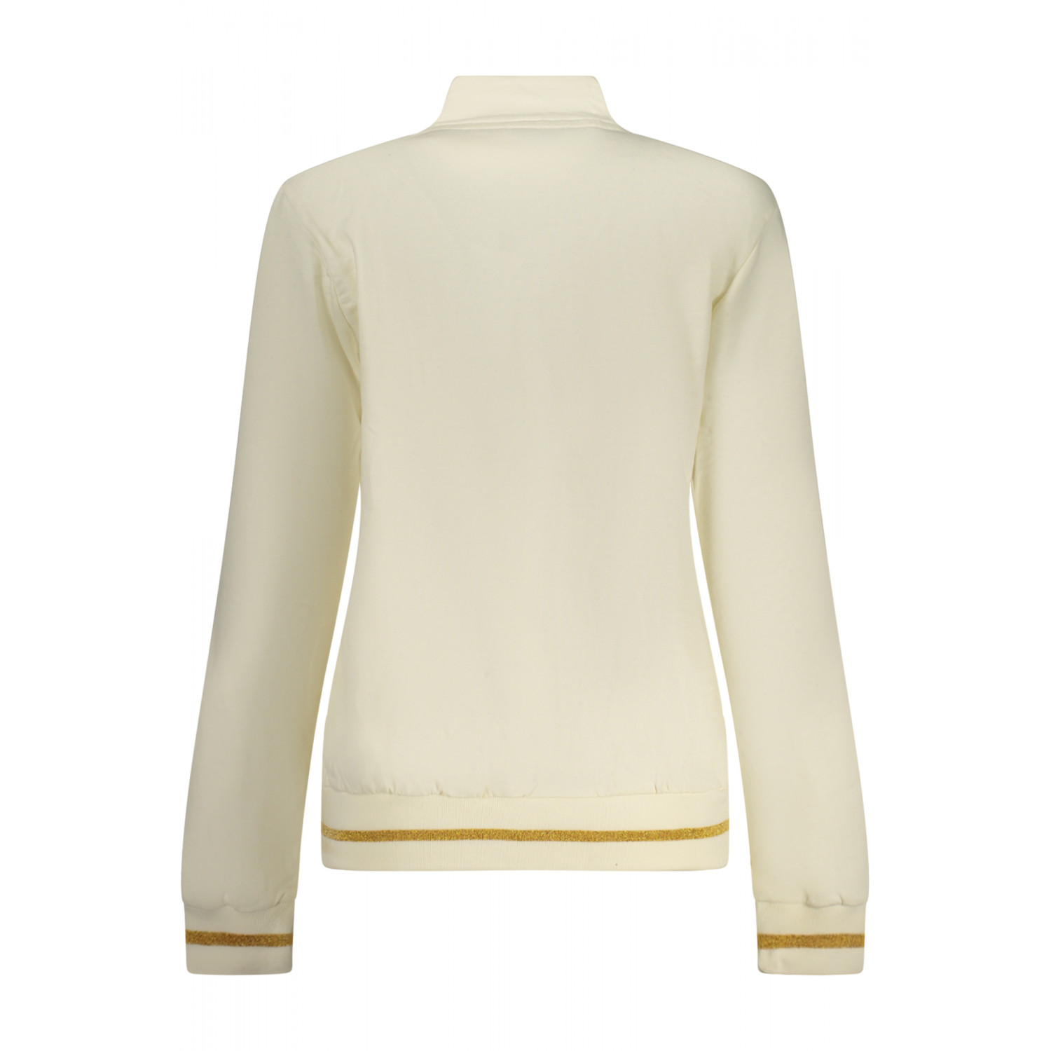Trainingsanzug mit Sweatshirt, langärmeliges weißes Sweatshirt mit zwei Taschen und durchgehendem Reißverschluss, schwarze Hose mit elastischem Bund und Schnürung, kontrastierenden Details, Strassapplikationen und Logo.
