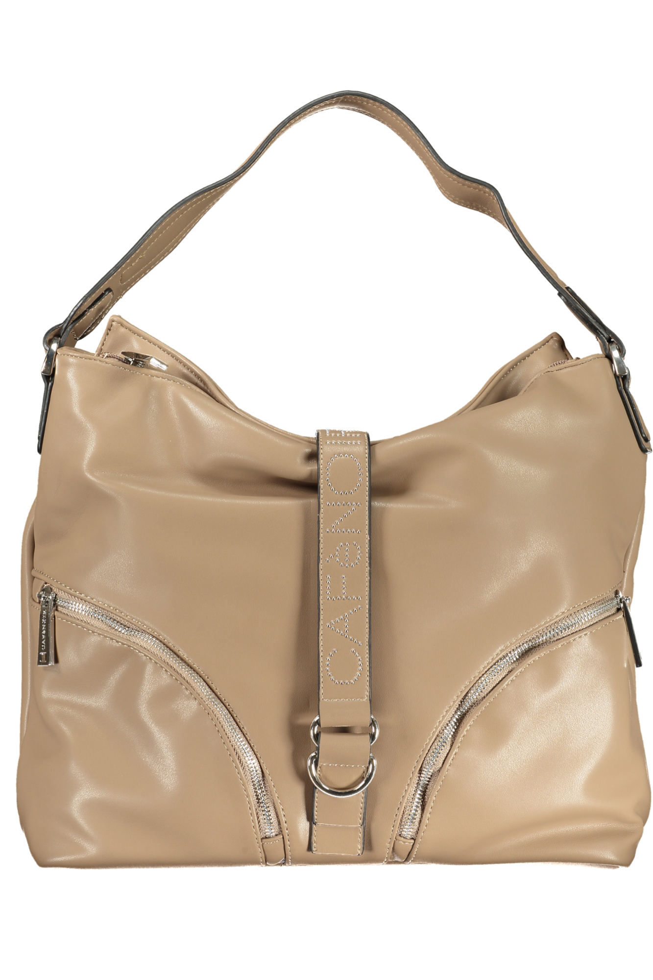 Schultertasche mit einem Henkel, 2 Außentaschen, 1 Innentasche, Fächer für Handys, kontrastierende Details, Reißverschluss und Druckknopfverschluss, Logo