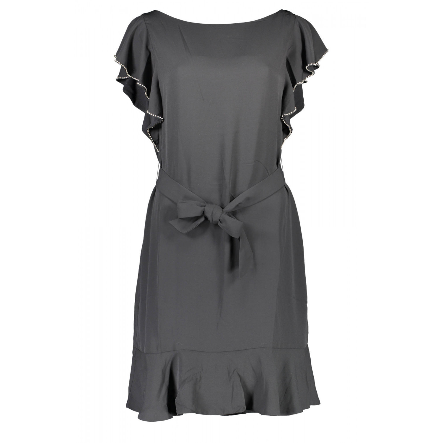 KURZES KLEID, KURZE ÄRMEL, ABNEHMBARER HÜFTGÜRTEL, KONTRASTDETAILS, LOGO